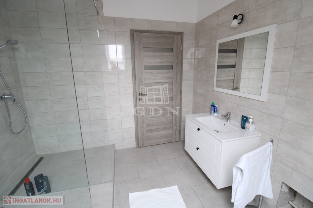 Ezen kívül a házhoz tartozik egy két gépjármű tárolására alkalmas 39nm nagyságú garázs, aminek a tetőterébe lépcsőn lehet feljutni és igény szerint a tetőtér beépíthető.