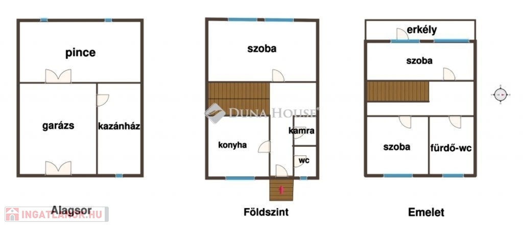 Az alagsorban kényelmes méretű garázs, tároló és kazánház található, ami praktikus mindennapi használatot biztosít.