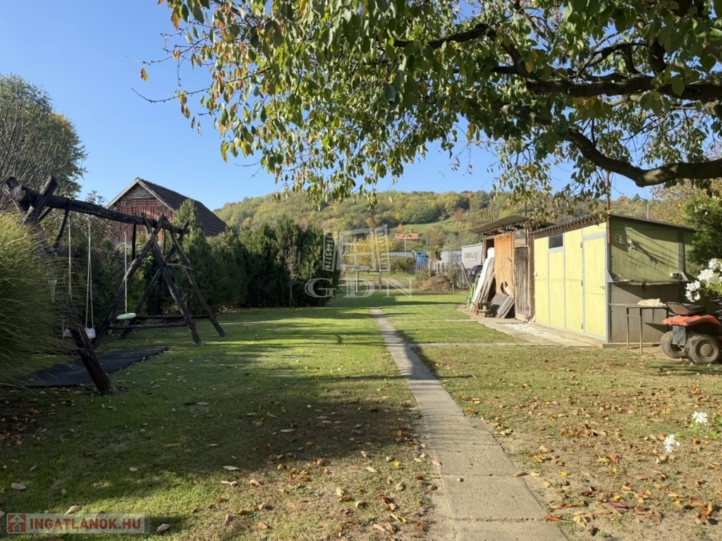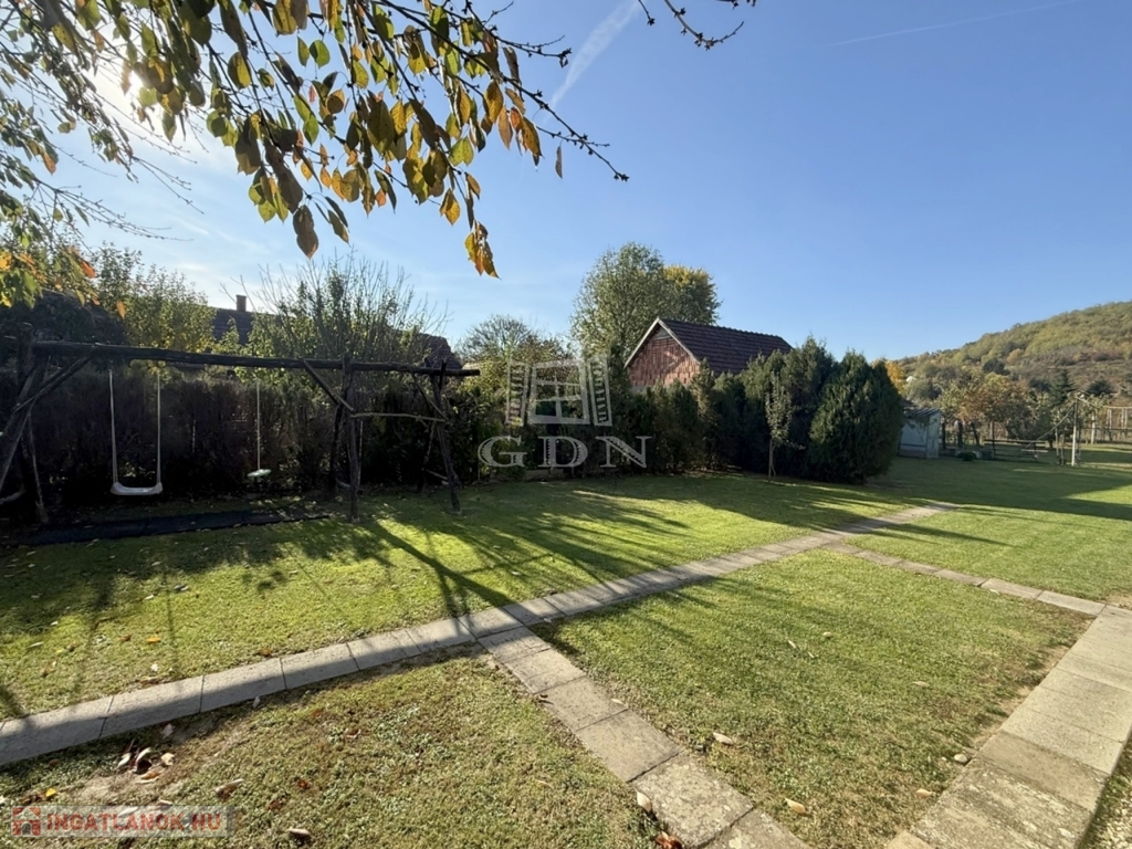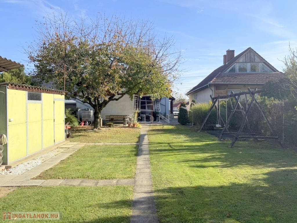 A terület cca. 800 m2, melyen szépen elkülönülnek a pihenésre és játékra szolgáló részek a veteményes és gyümölcsfák birtokától.