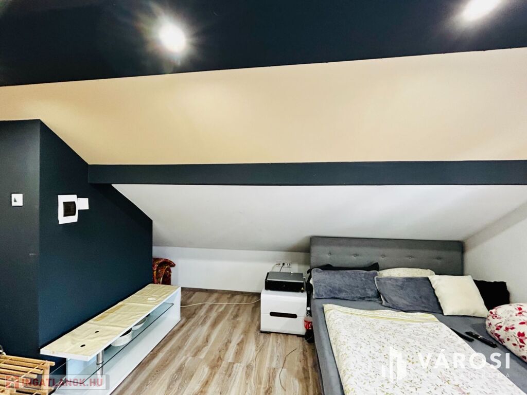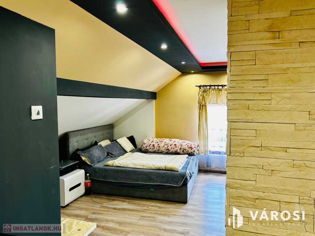 A tetőtérben egy fürdő és WC, valamint egy tágas szoba található, mely akár egy teljesen különálló lakrészt biztosíthat valaki számára.