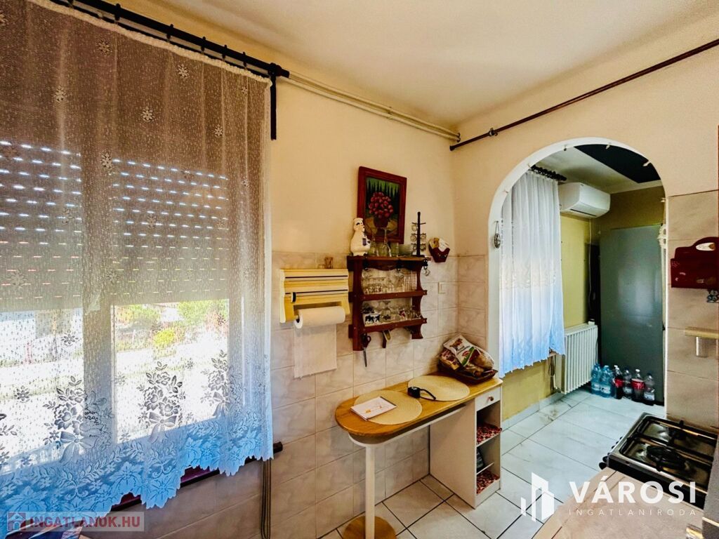 Az ingatlan csendes, nyugodt környezetben, zöld övezetben helyezkedik el. Az ablakok redőnyözöttek.
