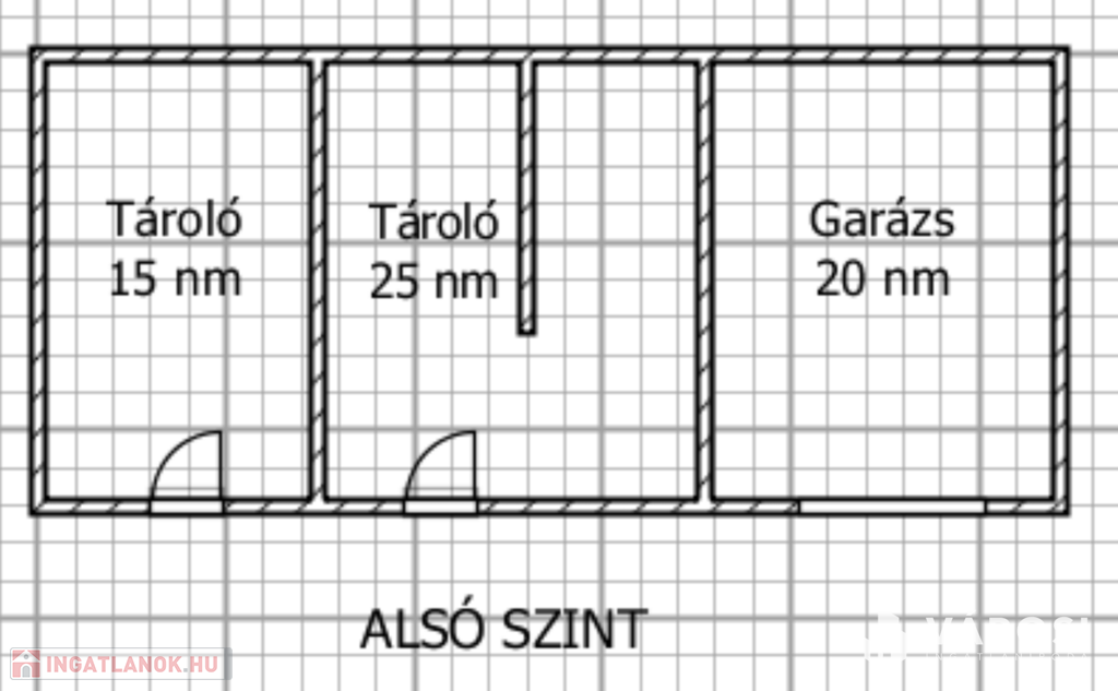Az alsó szinten 2 nagy tároló és 1 tágas garázs kapott helyet.