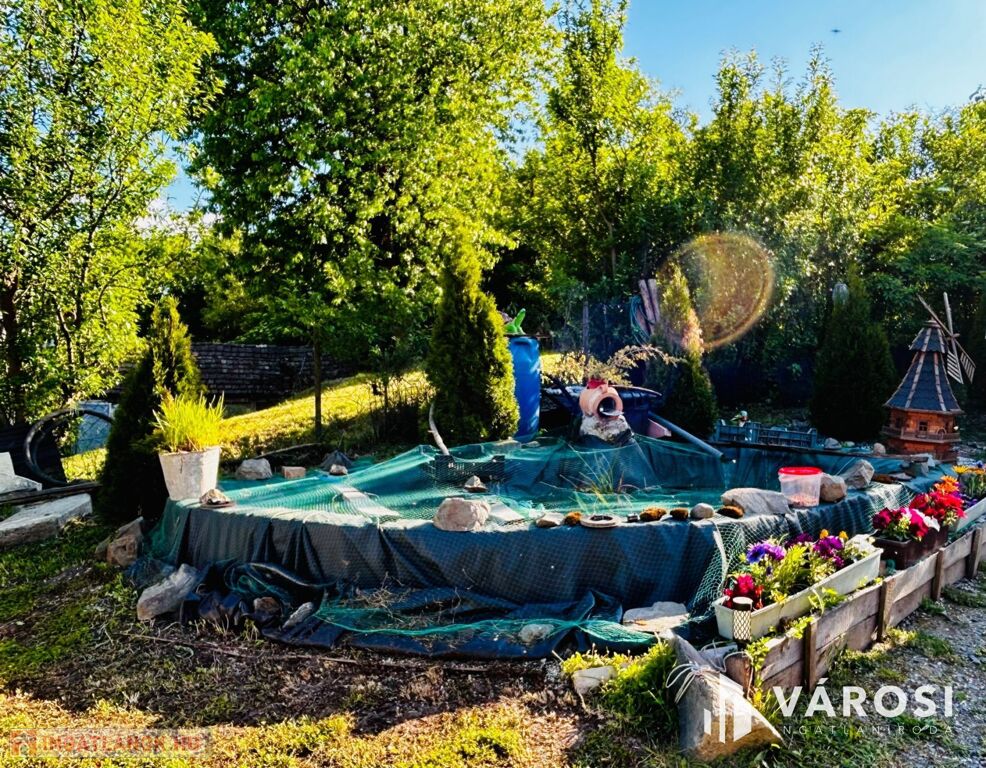 A kert 700 m2, melyben egy kerti tavacska, egy grillező-bográcsozó hely, egy fedett tároló és egy sziklakert is helyet kapott. Az elektromos kapu is a családi otthon kényelmét támogatja.