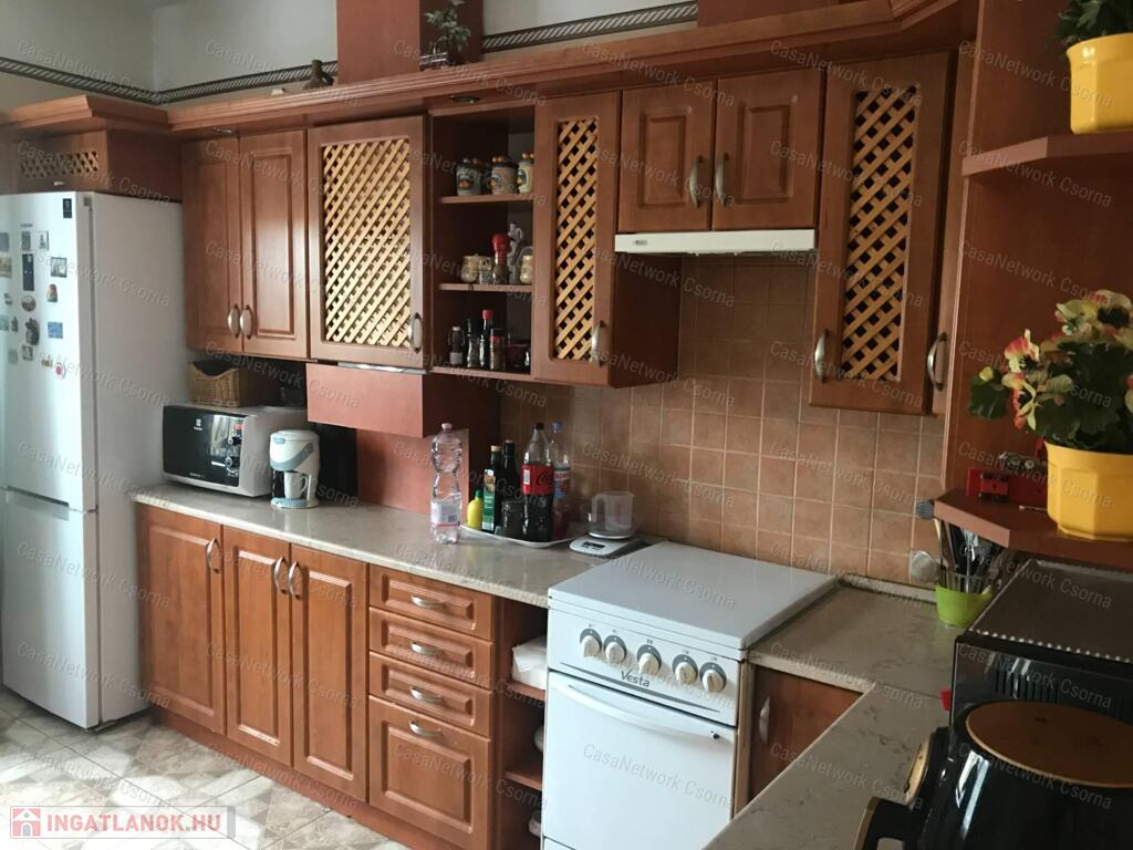 ELADÁSRA KÍNÁLOM ezt a Győrtől 16 km.-re Enese központjában található családi lakóházat, melléképületekkel !Az eladó ingatlan a település központi részén található, kiváló közlekedési kapcsolatokkal, közel mind az M85-ös gyorsforgalmi csatlakozásához, mind a 85-ös főúthoz. Csendes nyugodt lakókörnyezetben, gondozott porták között.A lakóház nagyon sokoldalú, lehetőségeket hordoz magában. Az épület földszintjén van egy szerelőaknás garázs, egy vegyestüzelésű kazán is. A bejárat előtti teraszról juthatunk az előszobába, innen nyílik egy földszinti nappali minibárral, kandallóval, TV-vel . Ezen a szinten található még egy zuhanyzós wc. Egy lépcsőkarral juthatunk az első szintre, ahol egy tágas, gépesített étkező-konyha, kamra, egy étkezővel berendezett közlekedő helyiség és egy fürdőszoba is van. A gázkazán is a konyhabútorba lett beépítve, természetesen szellőzéssel. Innen egy fél szinttel feljebb került kialakításra kettő nagyméretű háló, melyekről kijuthatunk az erkélyre és egy különálló wc-t is létrehoztak. A helyiségek tágasak, jól használhatók. Alkalmas nagy családosoknak, két generáció elkülönült együttélésére is.Szerkezetileg 1980.-.ban épített jól megépített téglaház, műanyag hőszigetelt üvegezésű nyílászárókkal. A burkolatok megfelelőek. A fürdő és wc szaniterek szépek, felújítottak.A melléképületekben lakatos műhely működött.Amennyiben szeretne többet megtudni az ingatlanról, hívjon bármikor, kérésre tudok több képet is küldeni, valamint egyeztetés alapján bármikor megnézhetjük együtt.Simon Kázmér 30 216 5557