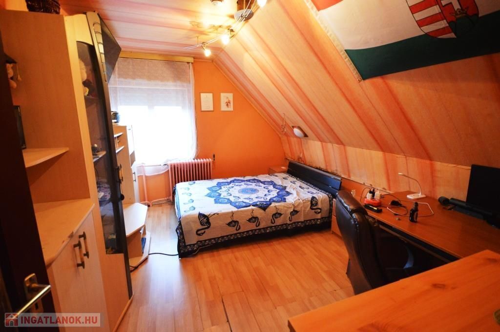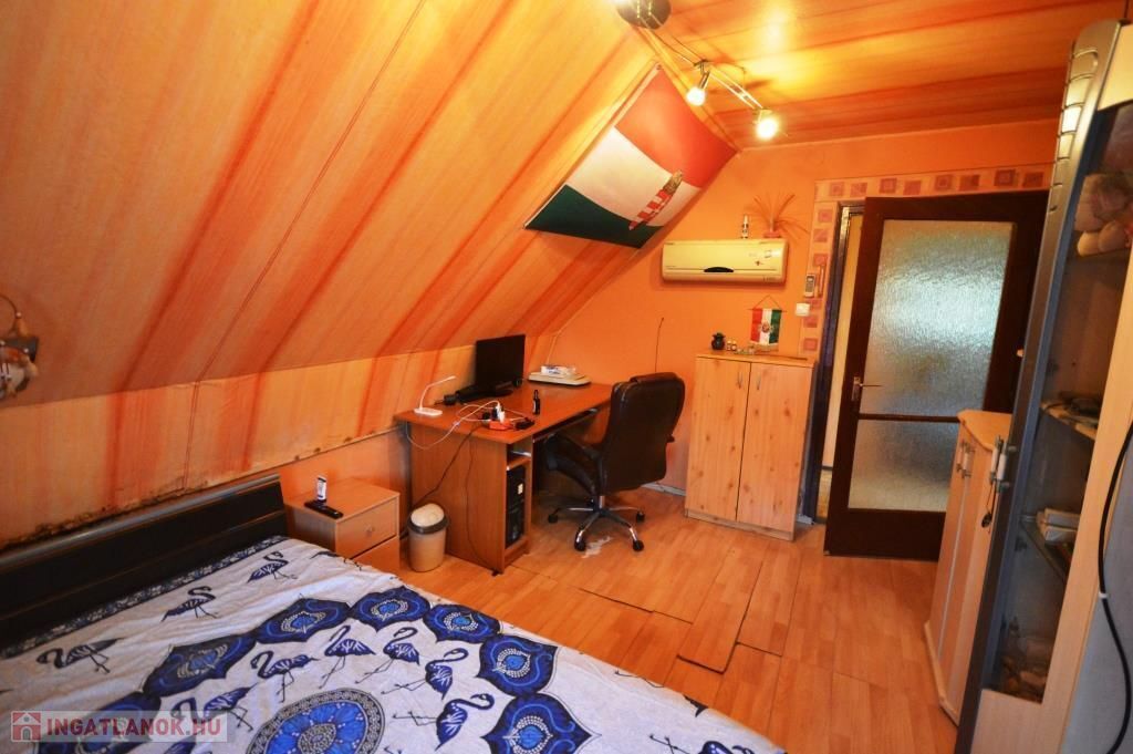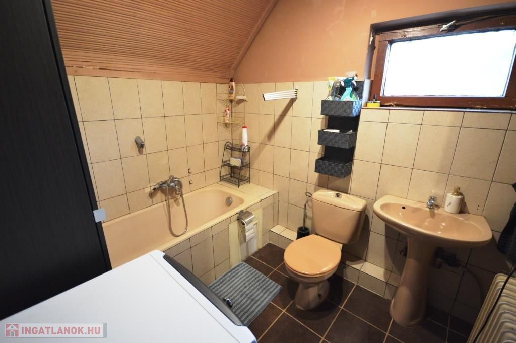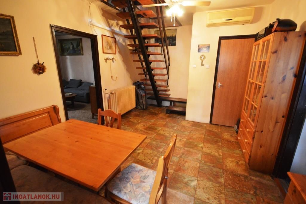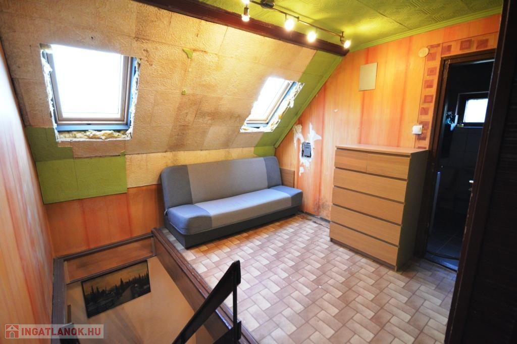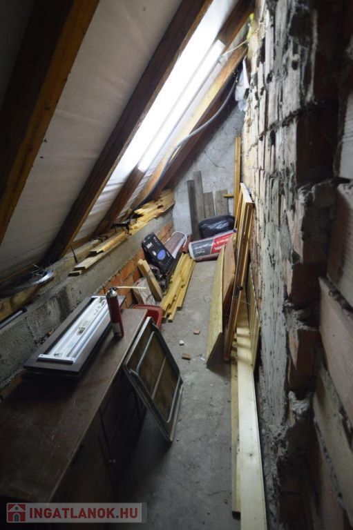 A Dunától 200 méterre, aszfaltozott utcában egy 1079 nm-es telken 1990-ben épült ez a tetőtér-beépítéses téglaház. Az épület lakható, de felújítandó állapotú! Idén egy szép, vadonatúj tető került rá, de a belső felújítás már az új tulajdonosra vár! A teljes ház alatt pince van, mely tartalmaz egy kb. 40 nm-es garázst, plusz kazánházat és műhelyt. A házhoz egy gondozott kert tartozik, melynek nagy részén gyümölcsös és szőlő található.