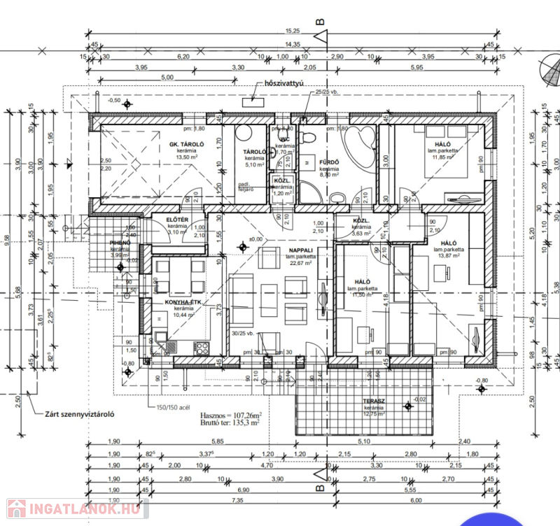 Nettó, terasz nélkül 107nm-es+ 15 nm-es terasz!