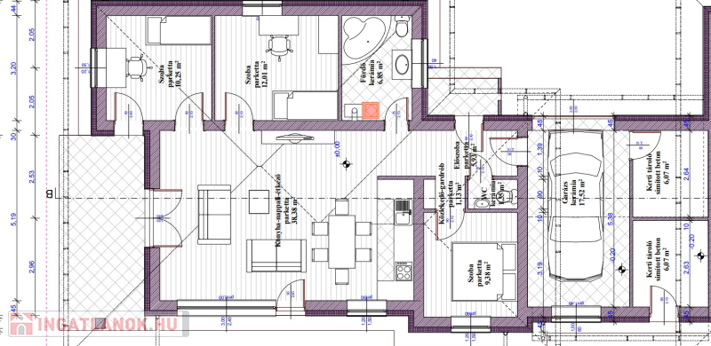 Kiváló adottságú telek előnyeit figyelembe véve alaposan átgondolt tervezés alapján épül az ingatlan benapozottsága optimális.