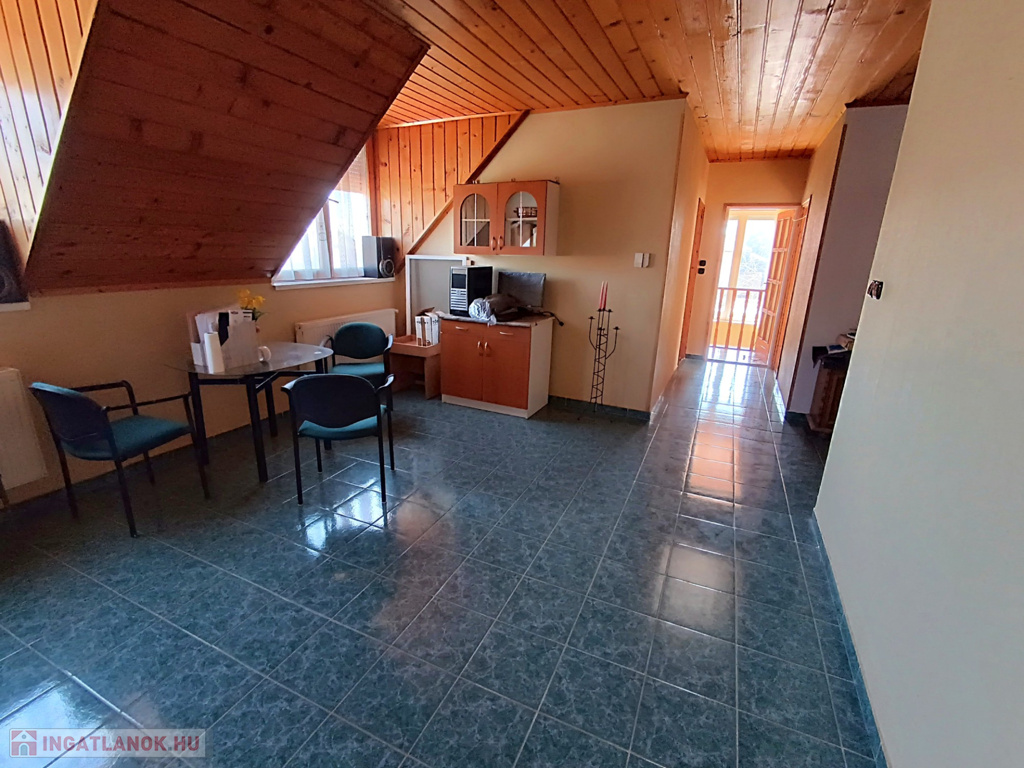 Az emeletre felérve a galériáról letekinthetsz a nappalira, ami igazán impozáns, hiszen a belmagasság itt eléri a 6 métert. Ezen a szinten egy második nappali is található konyhával, három hálószobával és egy fürdőszobával, így a fenti lakrész akár önálló lakásként is használható. A melegvíz ellátásról itt egy villanybojler gondoskodik, míg a földszinten egy kombi gázkazán biztosítja a komfortot.