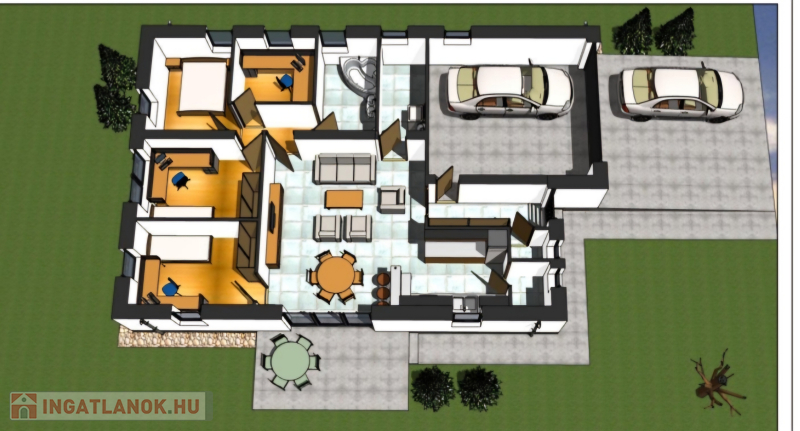 Az ingatlan négy szoba nappali-étkező, konyha egy légtérben, két fürdőszoba, garázs, terasz kialakítású! Alaprajzon még lehet változtatni igény szerint!
