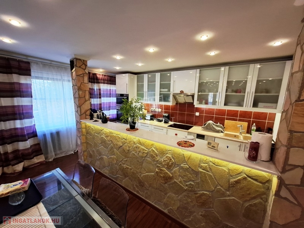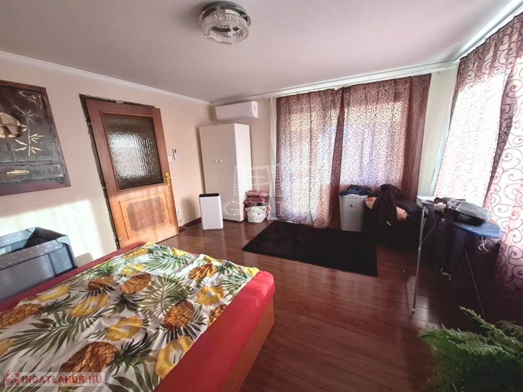 A családi ház 1981-ben 720 m2-es összközműves telken épült meg, beton sávalapra, tégla falazattal, beton födémmel, zsindely fedésű tetővel. Nyílászárói műanyag szerkezetű 3 rtg üvegezésűek nitrogénnel töltöttek, redőnnyel és szúnyoghálóval szereltek, külső oldalon fa mintázattal.