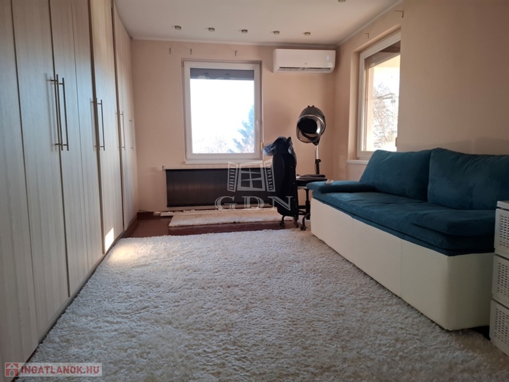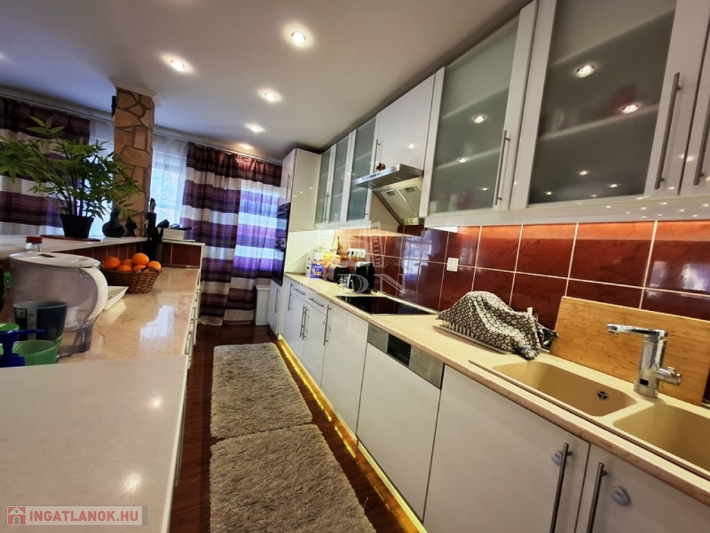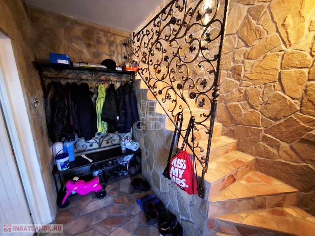 Az ingatlan helyiségei: alsó szinten 74 m2 külön bejáratú lakás, 2 szoba konyha, fürdőszoba, kamra. Szintén az alsó szinten található egy két állásos garázs (szerelő aknával), 80 m2 műhely, kazánház, pincelejáró.