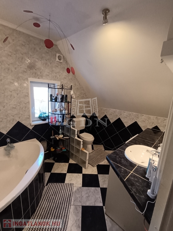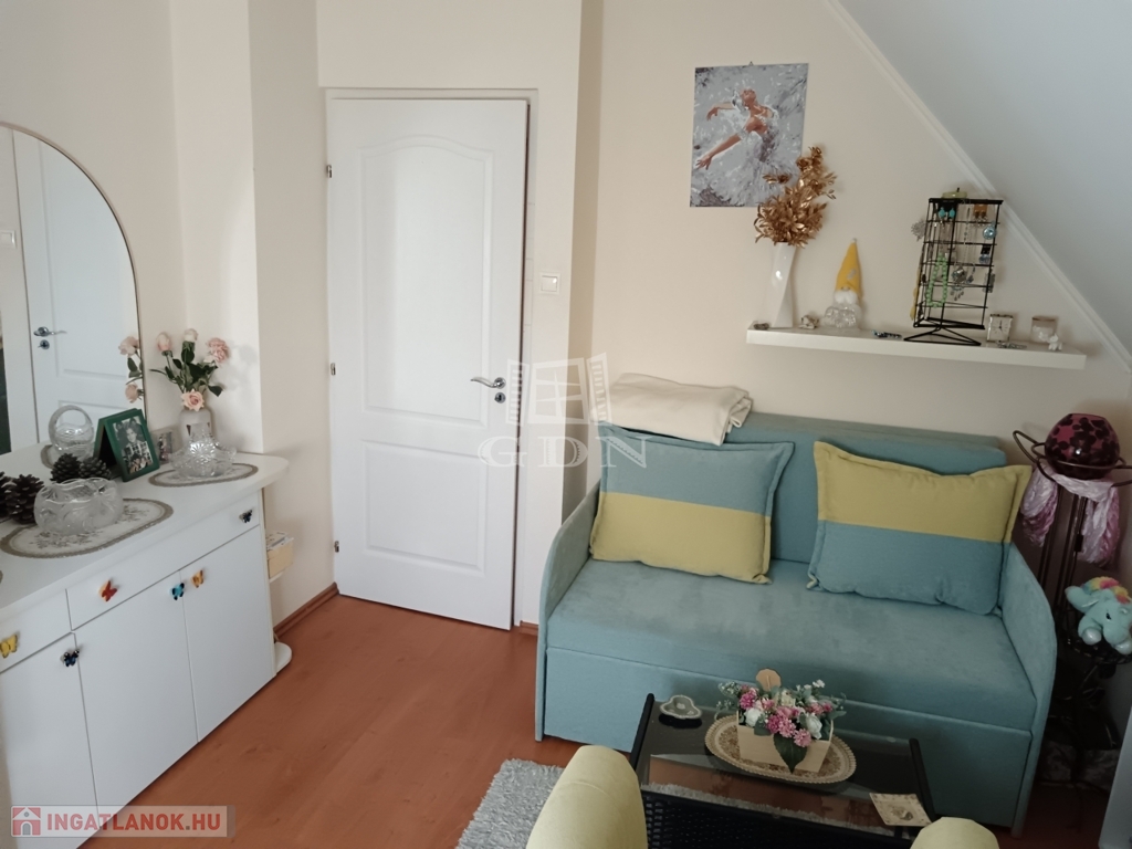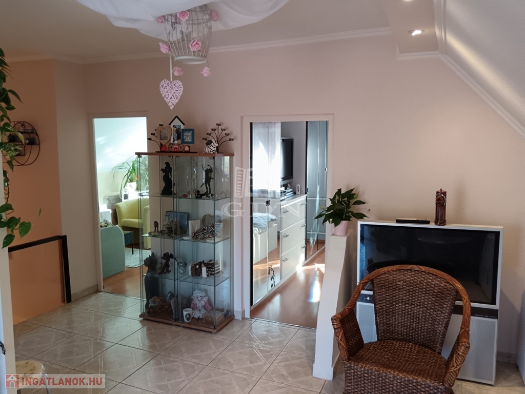 Az emeleten két tágas hálószoba, egy sarokkádas fürdőszoba, valamint egy világos nappali fogad.