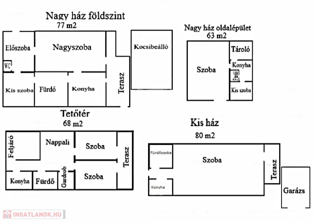 A kisebbik ház 80 nm-s, ami egy hatalmas nappaliból, fürdőszobából és egy szobából áll, amit elkezdtek konyhának kialakítani.
