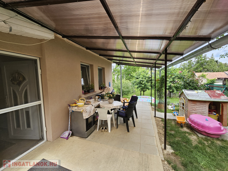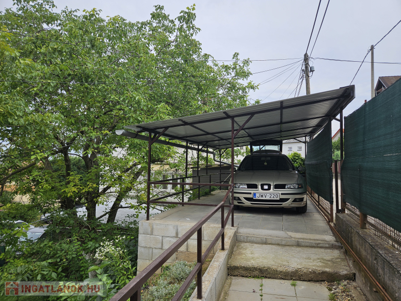 A kerten belül 2 autó részére fedett, beállási lehetőség.