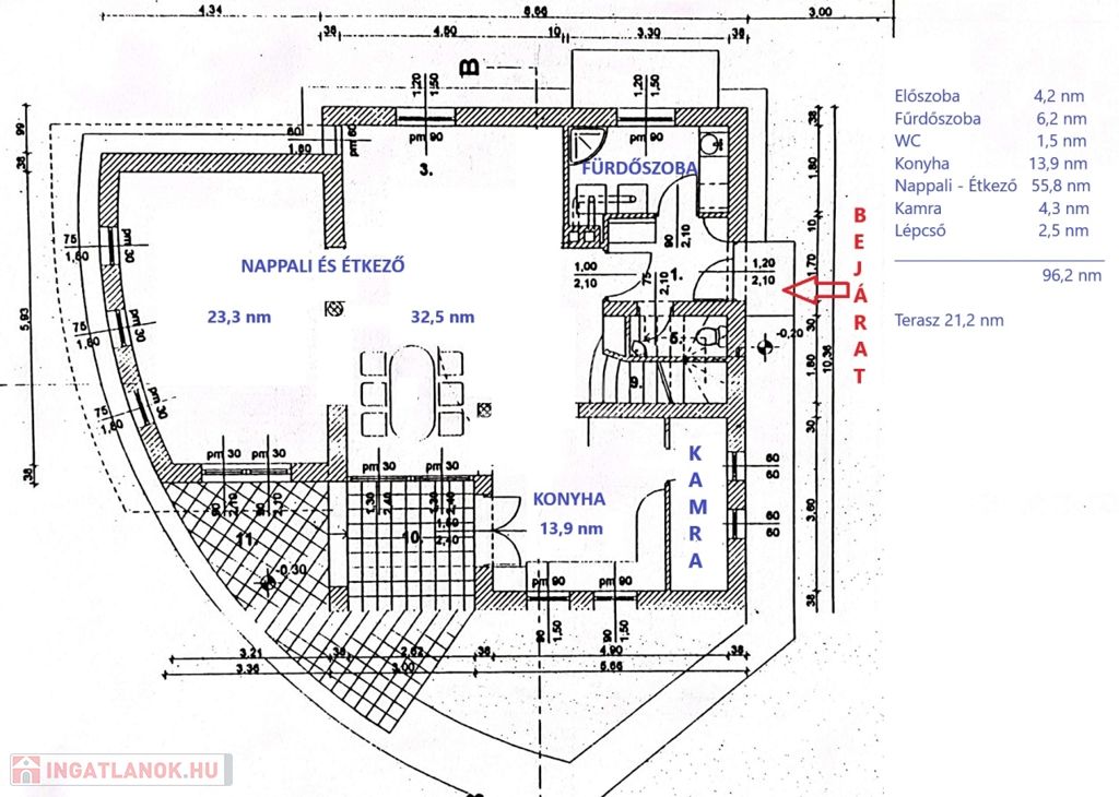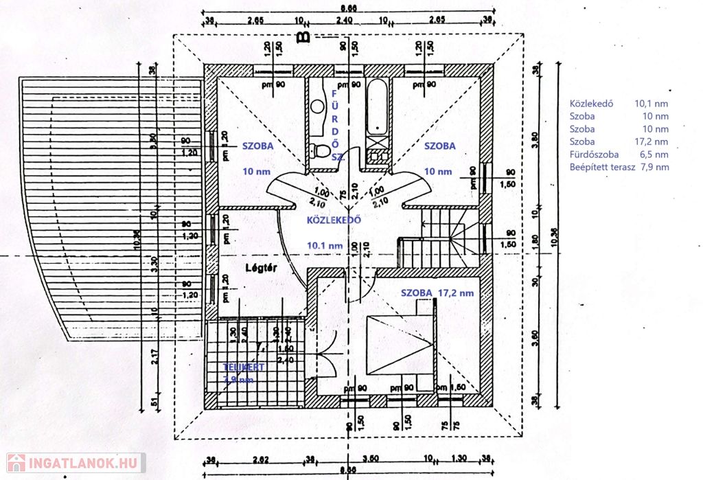 - vagy a fürdőszoba magasságában egy fallal leválasztható egy 11 nm-s szoba