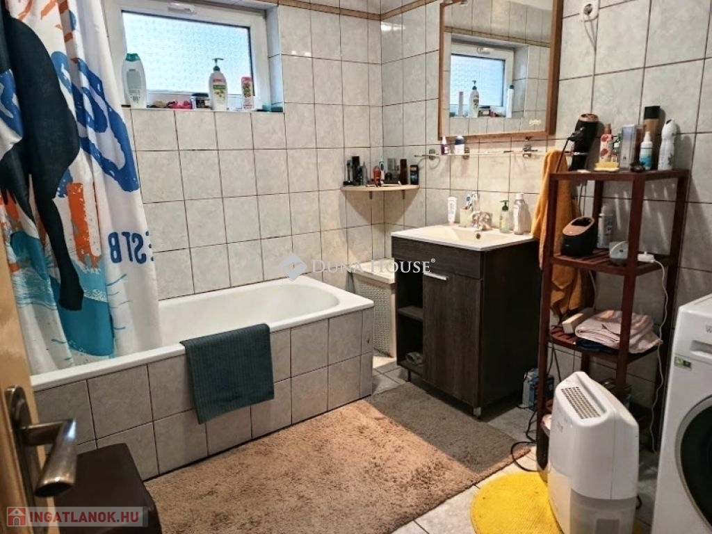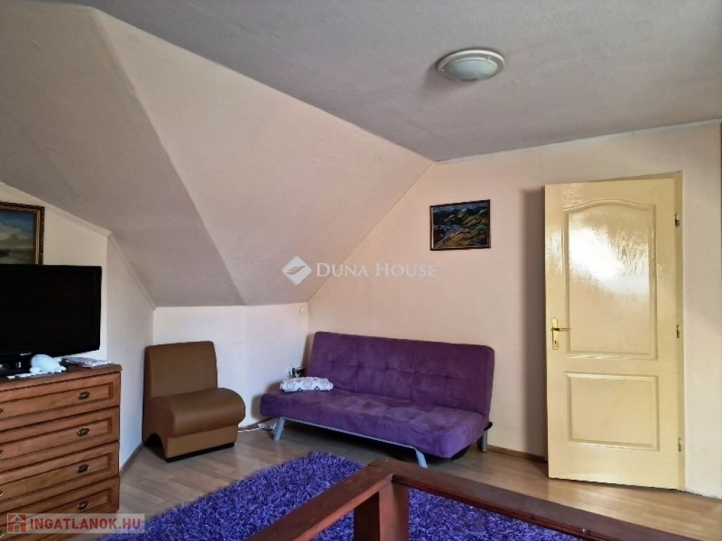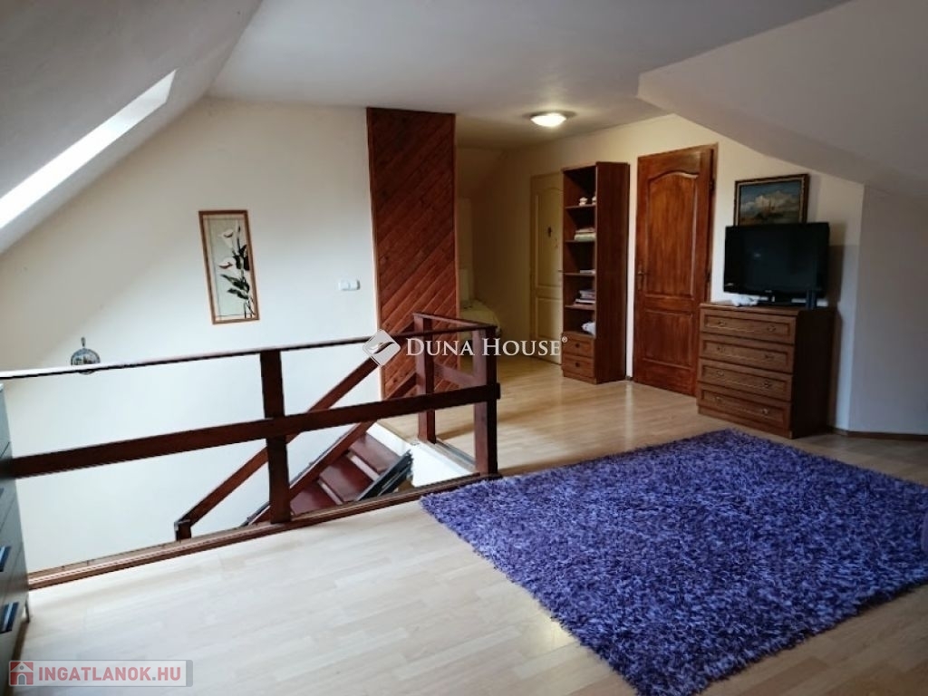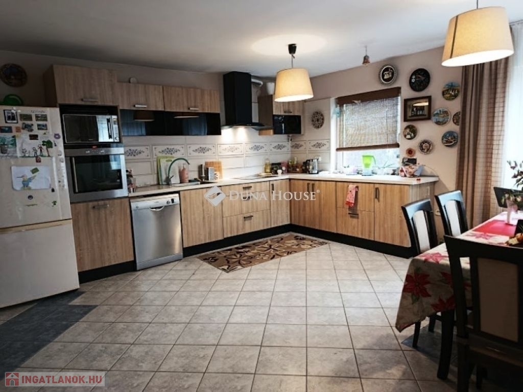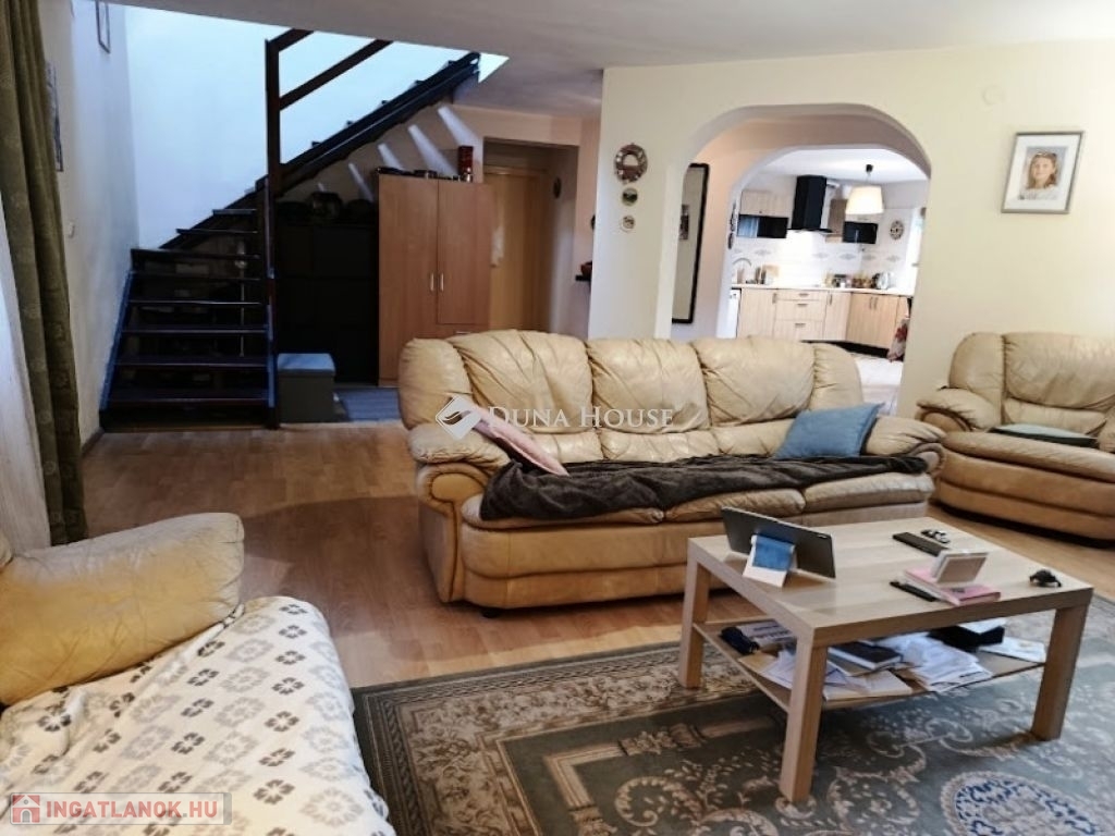 Érd-Fenyvesparkvárosban 2 lakásos családi ház, szép telekkel!Érd-Fenyvesparkvárosban, 716 m2-es összközműves sarok telken kínálok eladásra egy földszint + tetőtér beépítéses, 2 lakásos családi házat, mely kiváló lehetőséget kínál összeköltözőknek és kiadásra is. A nagyobb lakrész nettó 136 m2, földszint (76 m2) + tetőtérből (60 m2) áll. A földszinten hatalmas nappali (29 m2), konyha-étkező (25 m2), fürdőszoba, külön WC, előszoba és lépcsőtér van, továbbá kapcsolódik hozzá még garázs (16 m2) és tároló (12 m2), ahol a gázkazán is helyet kapott. A tetőtérben kis nappali-pihenő, 3 hálószoba, valamint fürdőszoba-WC és még egy beépítésre váró rész található.A kisebb lakrész 36 m2-es, földszintes, szoba, konyhából, fürdőszoba-WC-ből és kis tárolóból áll. A 2 lakrész egyaránt egy 41 m2-es, nyitott teraszon átl közelíthető meg. A ház és a lakrészek tájolása ideális, dél-keleti, dél-nyugati fekvésük révén egész nap kapnak napot.Az ingatlan 2002-ben épült, 30-as tégla főfalak, 10 cm-es szigetelés, műanyag nyílászárók vannak, bukó-nyíló kivitelben. A lakrészek külön villany- és gázórával, gázkazánnal rendelkeznek. A kert tele fákkal, örökzöldekkel, ideális hely piknikre, pihenésre, a kerítés biztosítja az intimitást, a privát szférát.Érdnek ezen része a nyugalomról, a tiszta levegőről és a kiváló infrastruktúráról ismert. A környék biztonságos, kertvárosi hangulatú, mégis minden fontos szolgáltatás (iskola, óvoda, bevásárlási lehetőségek) és az autópálya-felhajtó is gyorsan elérhetőek.További információért vagy megtekintés végett kérem hívjon bizalommal!