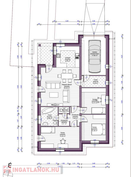 Kiváló adottságú telek előnyeit figyelembe véve alaposan átgondolt tervezés alapján épül az ingatlan benapozottsága optimális.