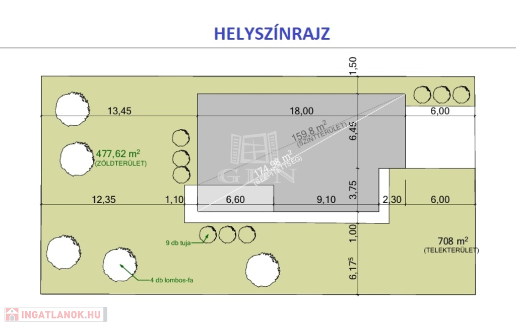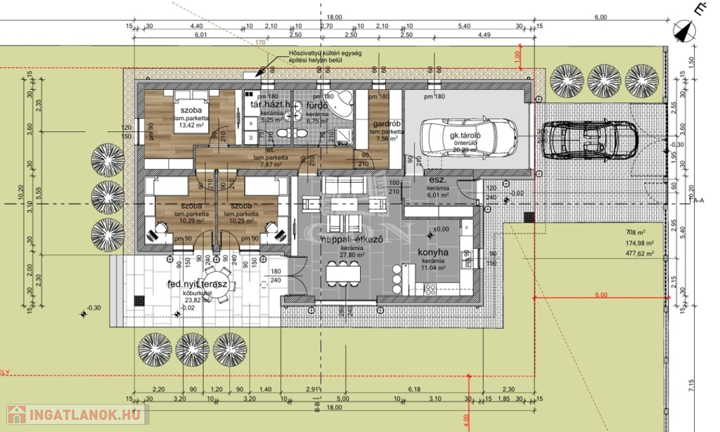 A ház nettó 125 nm, plusz a 24 nm terasz. Mindez 708 nm telken.