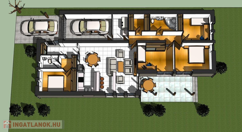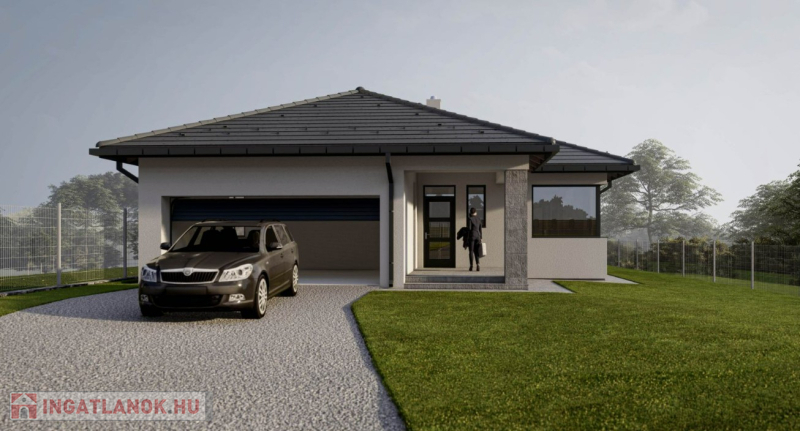 Kiváló adottságú telek előnyeit figyelembe véve alaposan átgondolt tervezés alapján épül az ingatlan benapozottsága optimális.