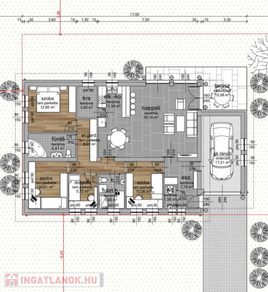 Kiváló adottságú telek előnyeit figyelembe véve alaposan átgondolt tervezés alapján épül az ingatlan benapozottsága optimális.