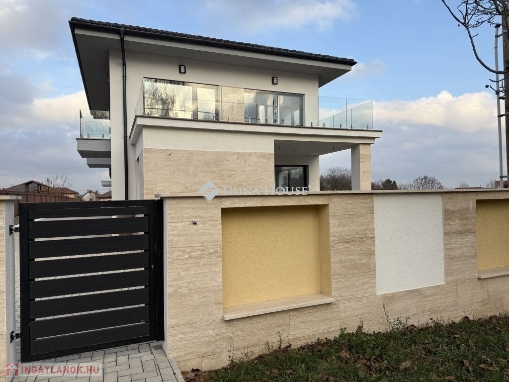 EXTRÁK:- Mennyezet hűtés-fűtés- Elektromos alumínium redőnyök- Térkövezett út - Üvegkorlát- Hörmann elektromos garázskapu
