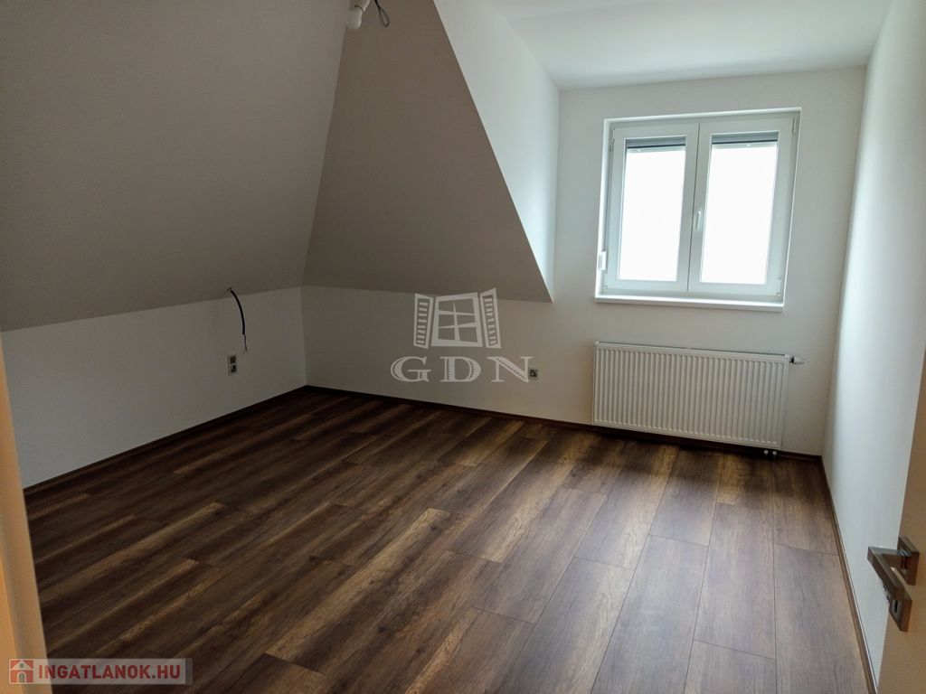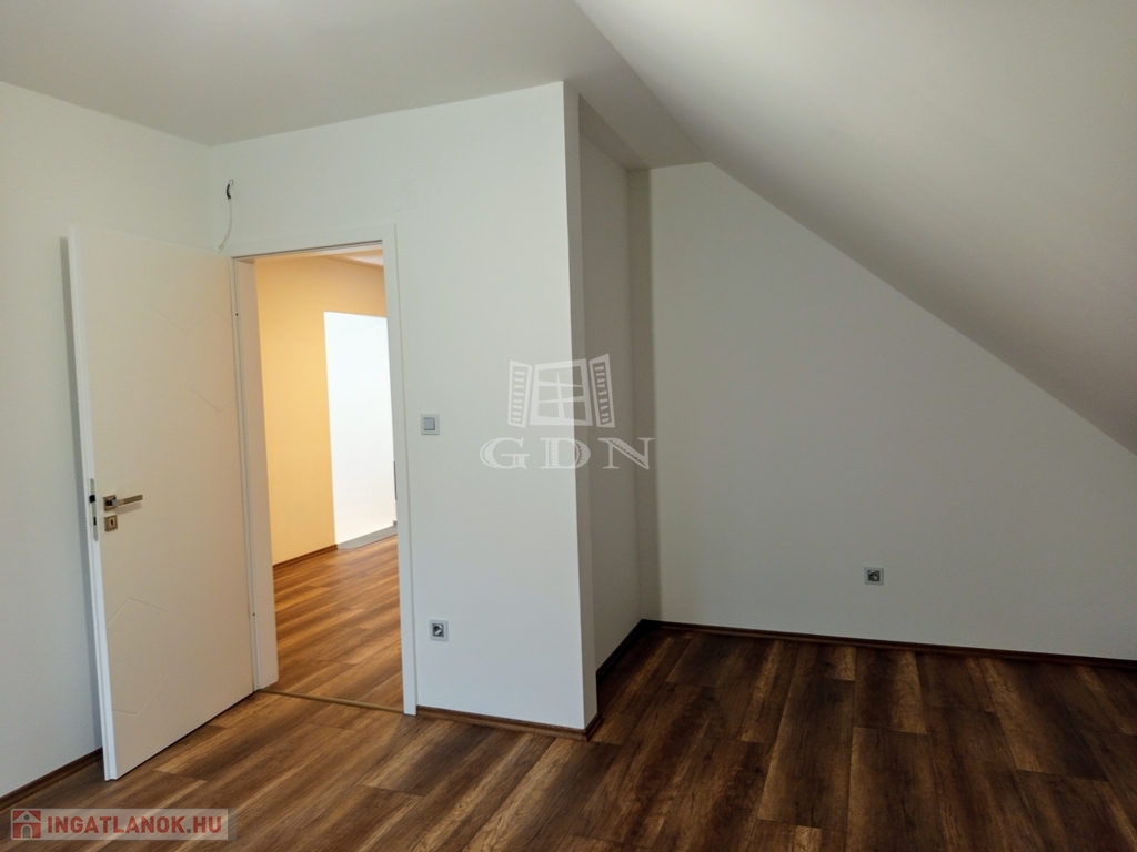 A tetőtérbe a LED égő csíkkal megvilágított lépcsőn jutunk fel. Ezen a szinten három, 20,0 nm, 14,95 nm, 13,5 nm szobát találunk, valamint egy 15,2 nm- es helységet amelyből a felső helyiségek nyílnak. Tea konyha 13,2 nm, gardrób helyiség 2,42 nm, kádas fürdő + WC 17,2 nm valamint egy önálló WC 1,38 nm találunk. A ház bejárata előtt egy 31,0 nm-es fedett terasz van ami alatt egy tároló helyiség került kialakításra.