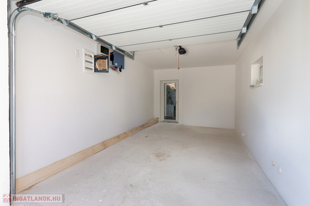 A 2 szintes, önálló családi ház földszintjén tágas, amerikai konyhás nappali-étkező kapott helyet, közvetlen terasz- és kertkapcsolattal, továbbá egy hálószoba, zuhanyzós fürdő + WC, kamra, előszoba, tároló, valamint egy garázs is megtalálható.