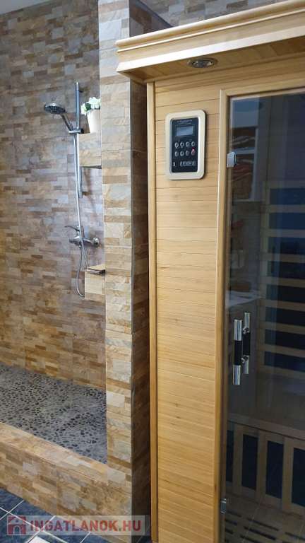Extrák: elektromos kapu, + automata garázsajtó, mely egy távirányítóról működtethető, fűthető garázs, elektromos redőnyök, automata öntöző rendszer, 2 db inverteres klíma, kandalló, padlófűtés, dupla komfort, szép, tágas telek, teraszok, grillező hely, kő kerítés,az egész telek körbekerített, 22 m-es utcafront.