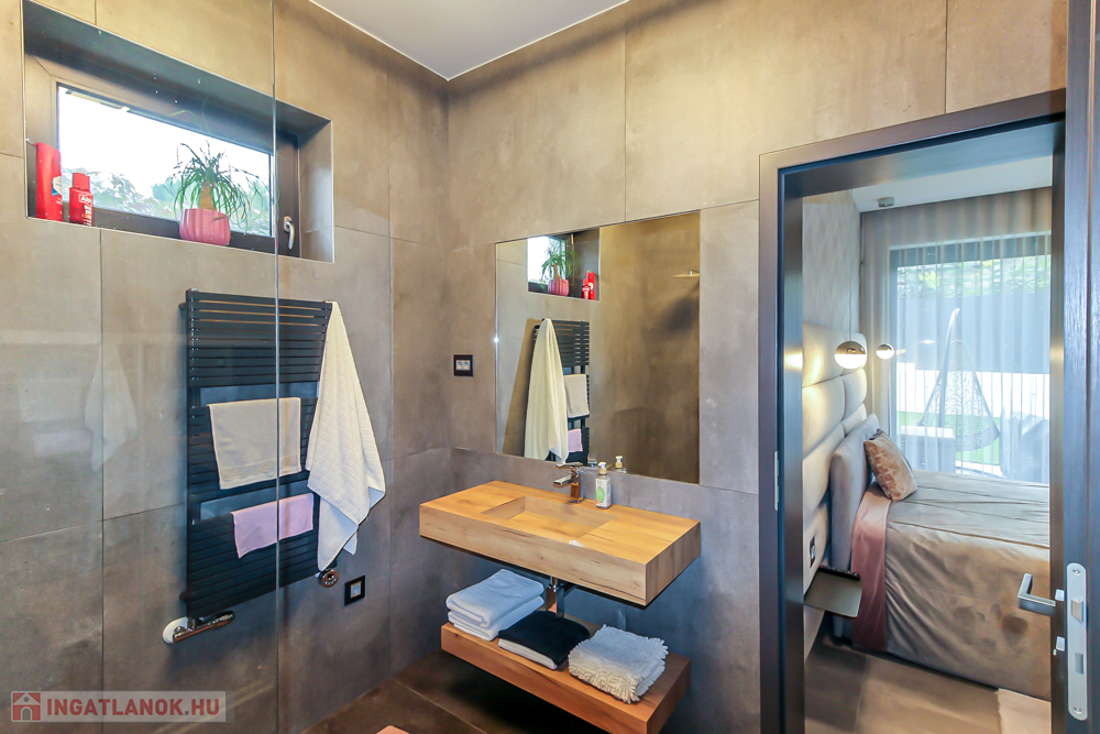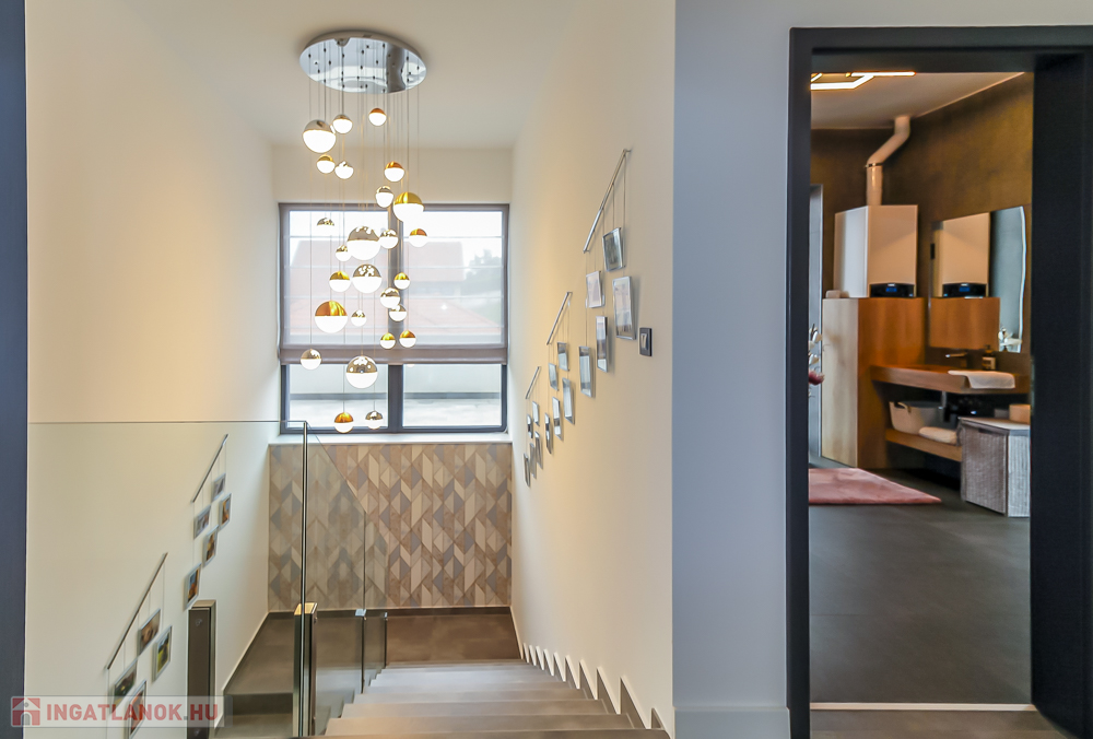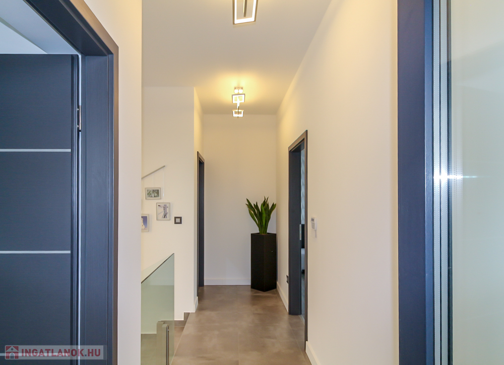 Nyílászárói háromrétegű üvegezésüek és elektromos redőnnyel felszereltek. A kert és garázsbejáró elektromosan mozgatható, a személybejáró kamerás kaputelefonnal ellátott. A biztonság jegyében: a ház biztonsági ajtóval, riasztóval, kamrarendszerrel egyaránt felszerelt.