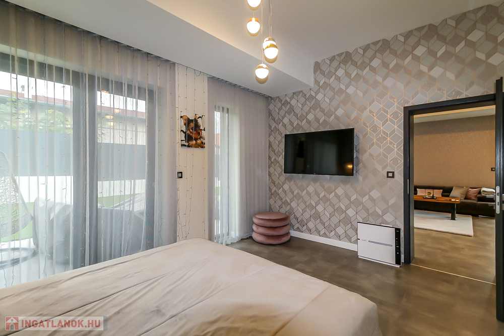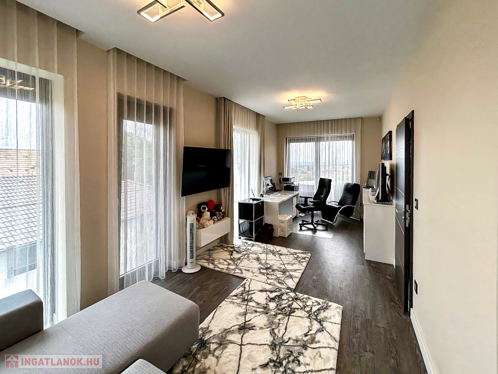 Az épület külső megjelenése otthonos, egyben jó elrendezésű belsőt takar, mely valóban prémium minőségi anyaghasználattal párosul. Jelenlegi elrendezése szerint, nappali + három hálószobás. Utóbbiak közül igény szerint az egyik kényelmesen egy válaszfal behúzásával ketté osztható. Az újonnan kialakított szobák méretei 12 m2- esek, természetes fénnyel ellátottak lesznek egyaránt és így már 4 hálószoba áll majd rendelkezésre.