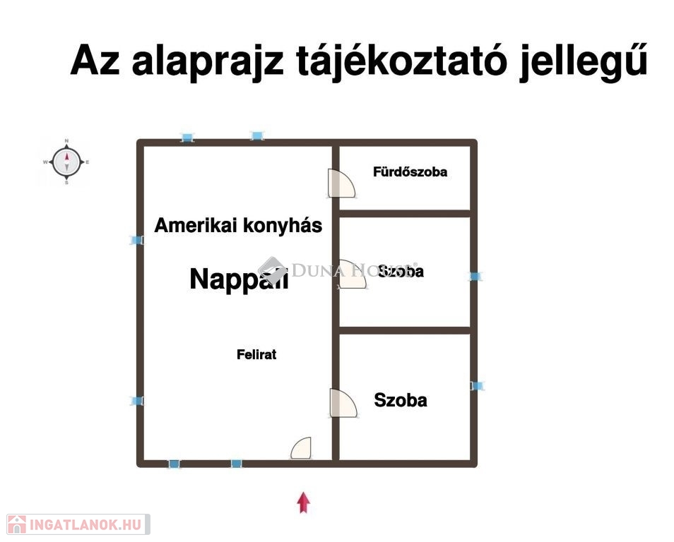 Elosztás: 2 hálószoba, tágas nappali, amerikai konyha