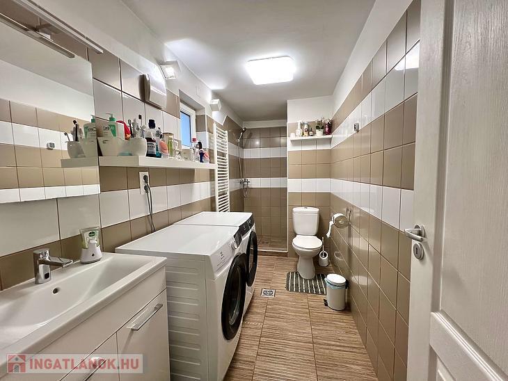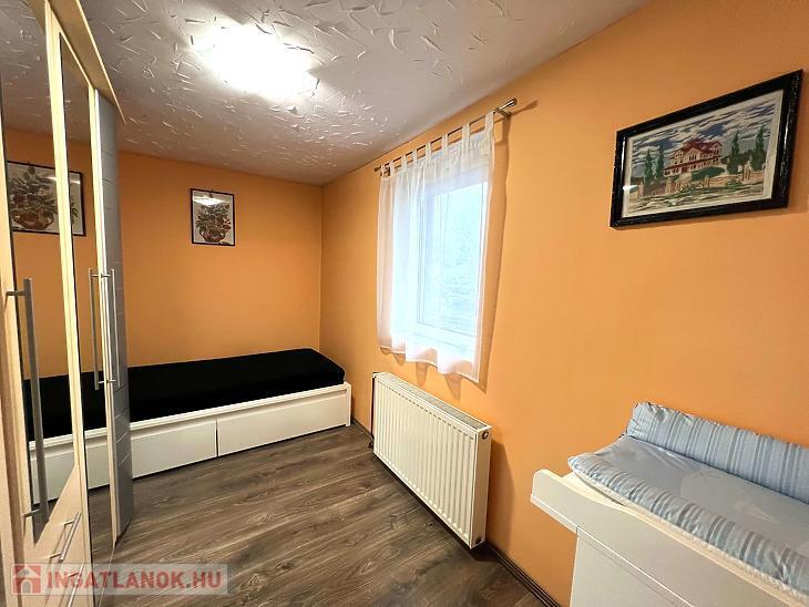 Szomszédságában találjuk a két, külön nyíló, kertre néző, ideális méretű hálószobát és az igényesen felújított, ablakos, épített zuhannyal, mosdóval és wc-vel szerelt fürdőszobát.