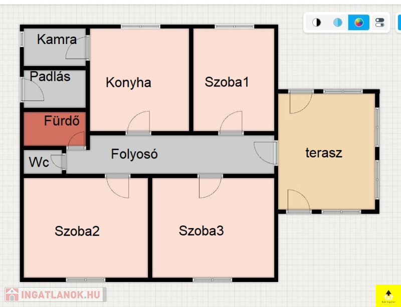 • Helyiségek: 3 szoba, külön fürdő és WC, pince, melléképület