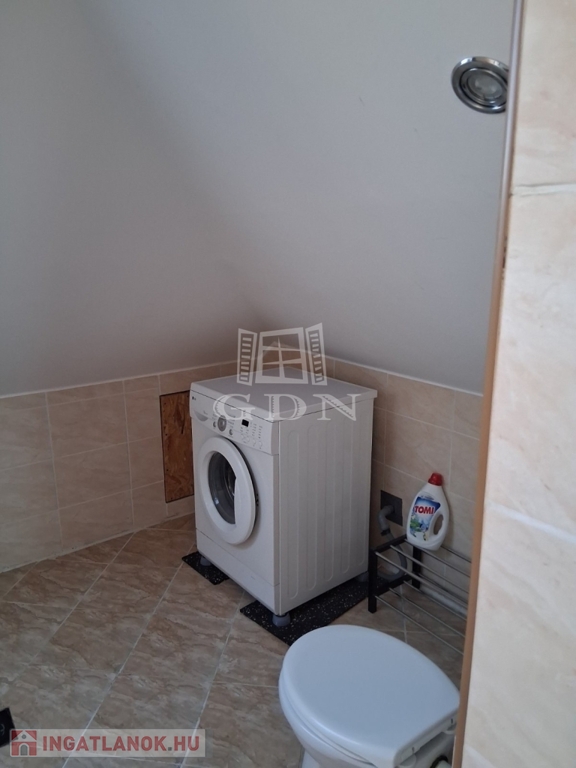 A fürdőszoba modern kialakítású, zuhanykabinnal, külön WC-vel, mosógép elhelyezési lehetőséggel.