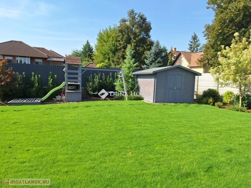 - Hátsó kertben játékterület + fa tároló / kerti ház