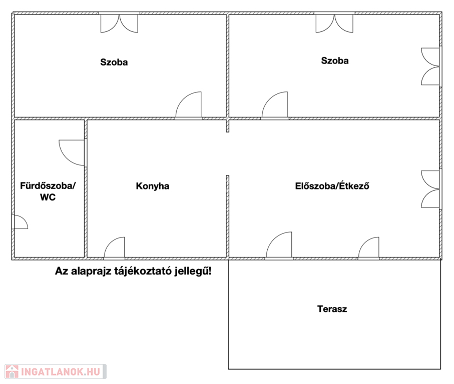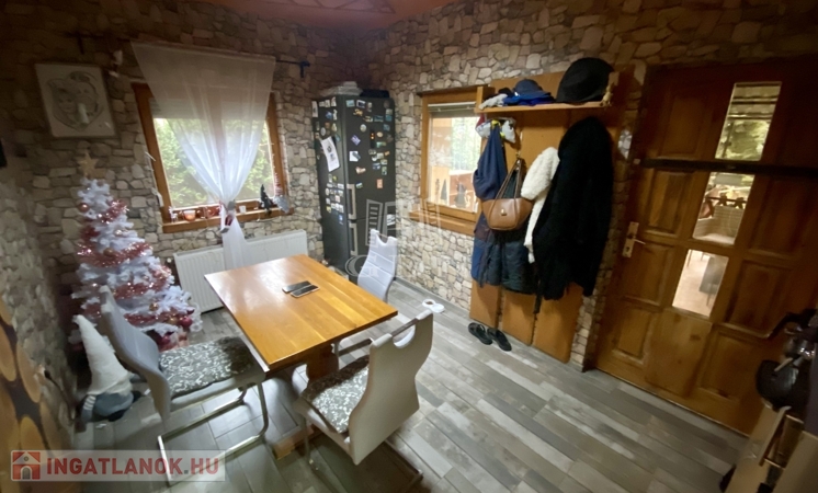 A teraszról az előszobába lépve került kialakításra az étkező, ahonnan nyílik egy szoba, illetve a konyha, melyben iparossal, egyedileg méretre készített konyhabútor található. A konyhából nyílik a fürdőszoba illetve még egy szoba. A fűtést gáz cirkó rendszer biztosítja.
