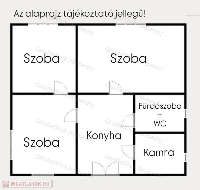 - Helyiségek: konyha, három szoba, fürdőszoba+WC, kamra.