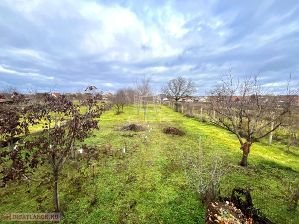 -veteményes kert, akácfák a telek végében