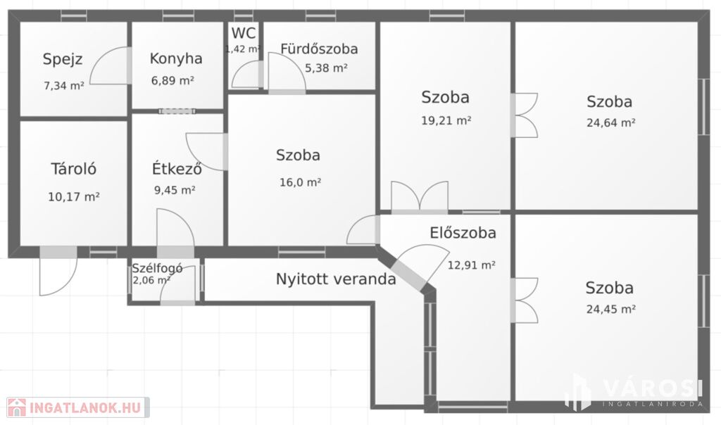 Ez a 130 m²-es, egyszintes, családi ház ideális lehetőséget kínál mindazok számára, akik nyugodt környezetben, mégis kiváló közlekedési feltételek mellett szeretnének élni. Az ingatlanban három tágas szoba, egy nappali, egy spejz egy konyha étkezővel, valamint külön fürdő és WC található.