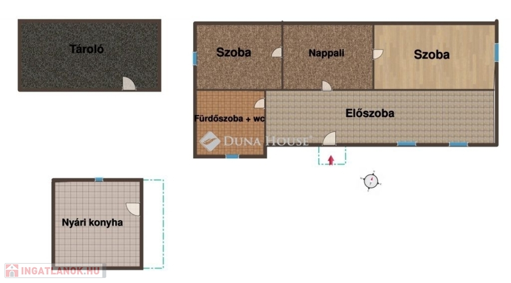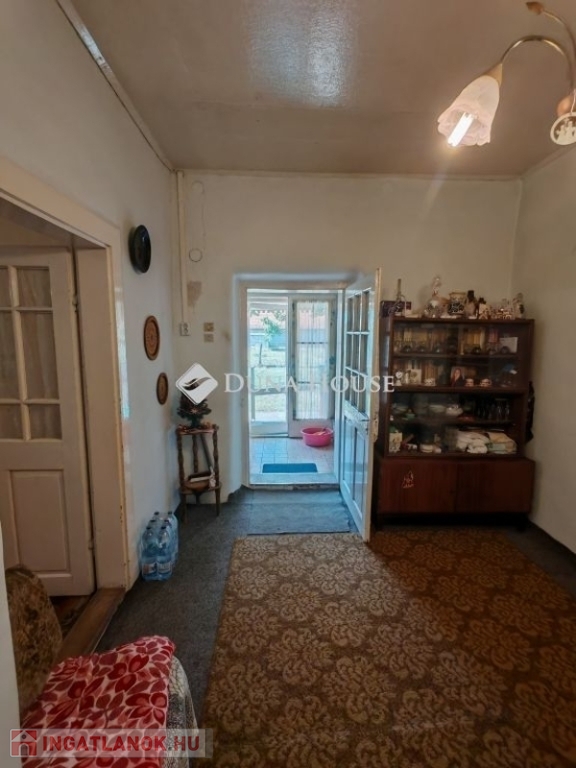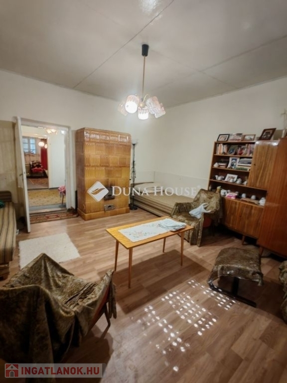 Eladó Pest vármegyében , Farmos településen egy felújítandó 77 nm -es családi ház 1252 nm es telekkel , mely teljesen körbekerített . Az ingatlan vegyes falazatú , cserép fedésű. Elosztása kettő szoba, nappali , előszoba , fürdő+wc. A kis nyári konyha külön épületben helyezkedik el a főépület mellett . Az ingatlan összközműves , a fűtést gázkonvektorok biztosítják . De egy nagyon szép állapotú cserép kályha is beépítésre került . A meleg vizet villanybojler adja. A telken egy fúrt kút is van , mely a tágas kert locsolását biztosítja . A burkolatok laminált padló , pvc , járólap . A nyílászárók régi típusúak , redőnnyel felszereltek. A főépület és a nyári konyha előtt is nyitott terasz található . Az ingatlan mellett gazdasági épület helyezkedik el , melyben tároló , füstölő , nagy pince , ól található. A kert méretéből adódóan , illetve a talaj minősége akár egy kis családi gazdaság fenntartását is biztosítja. A telken van szőlő , dió , bodza , körte , birsalma , meggy .Az ingatlan lokációja nagyon jó . A vasútállomás 5 perc sétára van . Farmos központi része 8-10 perc gyalogosan. Itt pedig Posta , közért , gyógyszertár , iskola , óvoda megtalálható.