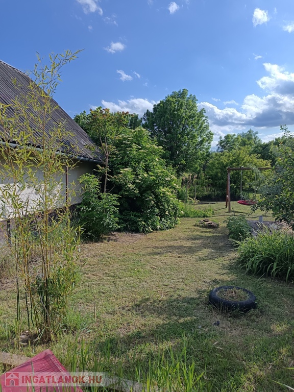 A kertben van egy kis ház és állattartásra alkalmas helyiségek. Kerti csap, csatornarendszer.