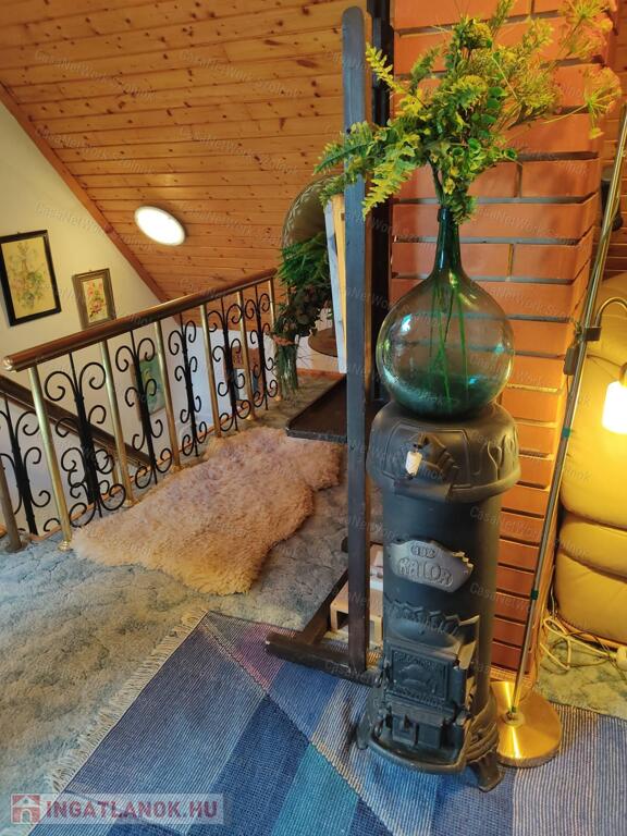 • a fűtésről a kertből megközelíthető helyiségben elhelyezett gázkazán gondoskodik, emellett cserépkályha is rendelkezésre áll,