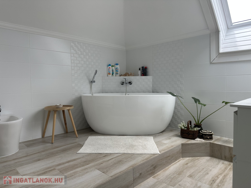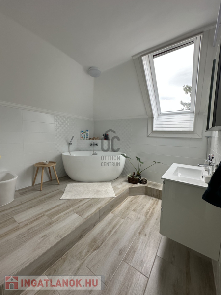 A ház műszakilag kiváló állapotú: 3 rétegű hőszigetelt nyílászárók, többrétegű hőszigetelés, kondenzációs és vegyestüzelésű kazán, automata öntözőrendszer külön vízórával, robotfűnyíró-hálózat kiépítve. A garázsból közvetlen bejárat nyílik a lakótérbe, a szintek hő- és hangszigetelten elválasztottak. Gépesített konyha, beépített szekrények, száraz pince, polcozott tárolók szolgálják a kényelmet.