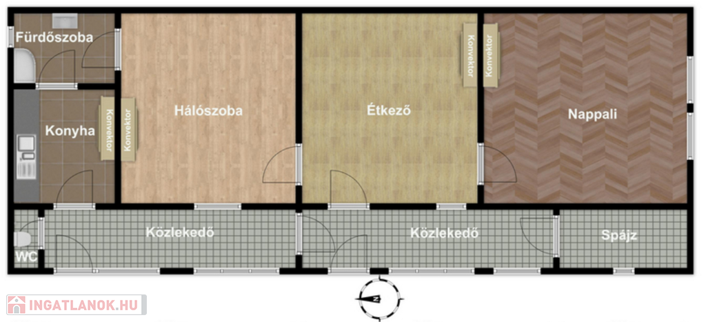 Jelenlegi fűtési rendszere gázkonvektor, a melegvizet gázbojler szolgáltatja. Az ingatlan elosztása a mai kor igényeinek megfelelően alakítható. A lakóépület falain felázás nyomai láthatók, amely a hiányzó vízszigetelésre vezethető vissza. A felázás megszüntetése teljes felületű padló vízszigeteléssel, padlócserével, falátvágással valósítható meg.