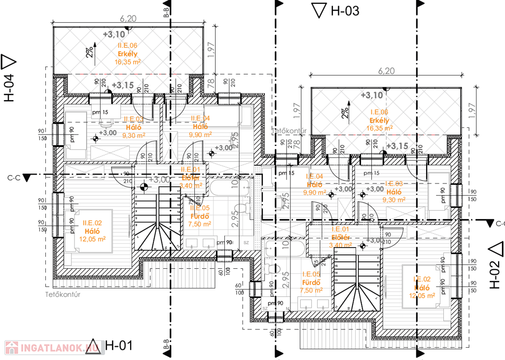 - minőségi, kezelt fa tetőszerkezet betoncserép fedéssel