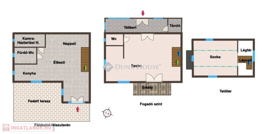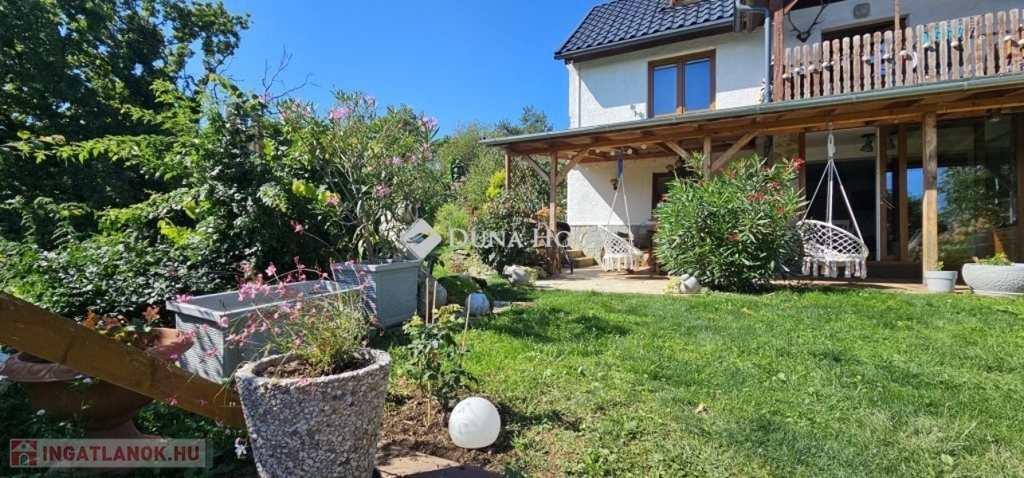 A lakóház a telek közepén kapott helyet, melynek földszinti része 40 m2+20 m2 fedett terasz. A félemeleten 1 szoba, télikerttel, panorámás terasszal, mellékhelyiséggel került kialakításra 48 m2-en.