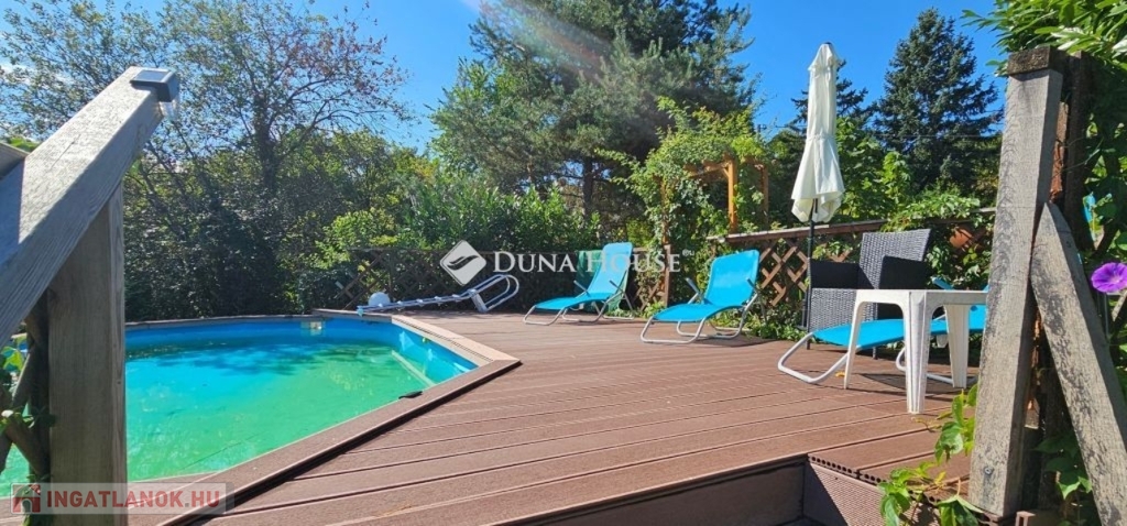 Az udvaron egy 7,6*3,6 m-es medence is helyet kapott, mellette örökpanorámás napozóterasz és kerti tusoló is kiépítésre került.