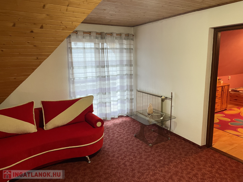 Az emeleten pedig négy hálószoba (10,8 m2, 15,84 m, és két 19,61 m2 méretűek), zuhanyzós fürdőszoba + WC, egy 20 m2-es közösségi tér kapott helyet, valamint két erkély is. Az egyikről balatoni részpanoráma is látható. A tetőtér kényelmes belmagassága miatt ezek a szobák is jól berendezhetőek.