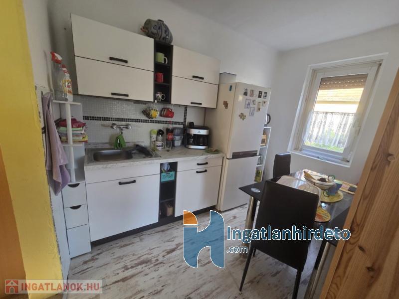 Elhelyezkedése: Belterület Tájolása: Dél-nyugai tájolású Állapota: Használt - felújított Komfort besorolása: összkomfortos Építési éve: 1930 Alapterülete: 76 m2 Telekterülete: 906 m2 Szobák száma: 2 + 1 szoba Felújított: Felújított Felújítás éve: 2022 Felújítás során elvégzett munkák: Festés, Villanyrendszer csere, Vízrendszer csere, Csempe csere, Járólap csere, Parketta csere, Fűrdőszobai szaniterek cseréje, Utólagos vízszigetelés, Tetőfelújítás, Tetőszigetelés, Nyílászárók cseréje, Hőszigetelt nyílászárók beépítése Közművek: Gáz, Víz, Villany, Csatorna Gázellátás: Vezetékes Vízellátás: Vezetékes víz Melegvíz-ellátás: Villanybojler Áramellátás: 230V/380 V Fűtés módja: Egyéb Fűtés típusa: Egyéb Homlokzat állapot: Jó Építési mód: Tégla, Kő, Vályog Tető formája: Magas Tető anyaga: Cserép Parkolási lehetőség: Telken Kilátás: Utcafronti kilátás Jellemzői: Csendes környék, Jó közlekedés, Redőny, Légkondicionáló, Udvari terasz, Kert, Kerítés, Zöldterület, Jó közbiztonság, Beépített tetőtér Energetikai besorolás: H Egyéb jellemzők: Terasz, Melléképület, Pince Tv, Internet: Kábeltévé, Internet Terhelések: Tehermentes ingatlan Eladásra vonatkozó információk: Az ár tartalmazza a teljes berendezést, Azonnal beköltözhető