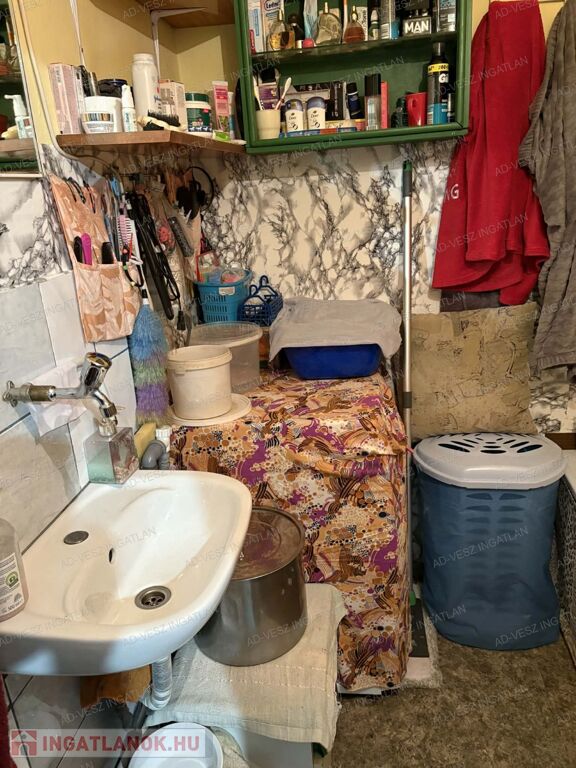 Az ingatlanban egy szoba, konyha, előszoba, közlekedő, és egy mosdó helyiség lett kialakítva.